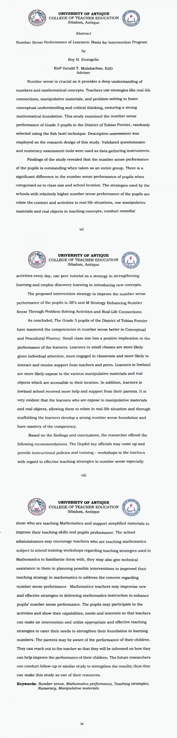 Number sense performance of learners :