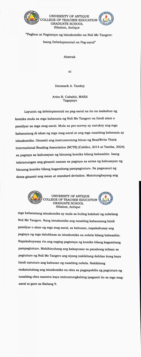 Pagbuo at pagtataya ng isinakomiks na Noli Me Tangere :