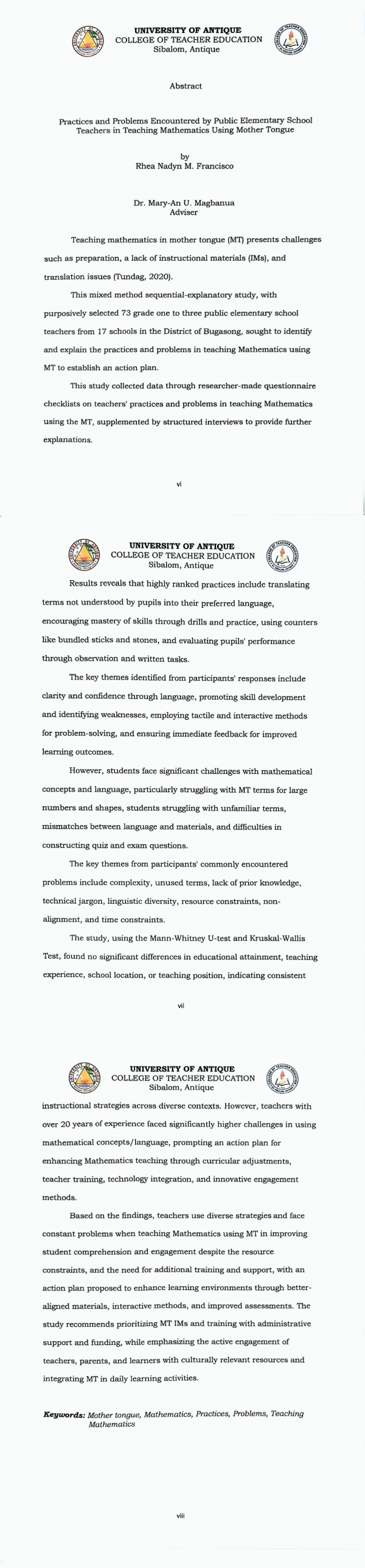 Practices and problems encountered by public elementary school teachers in teaching mathematics using mother tongue /