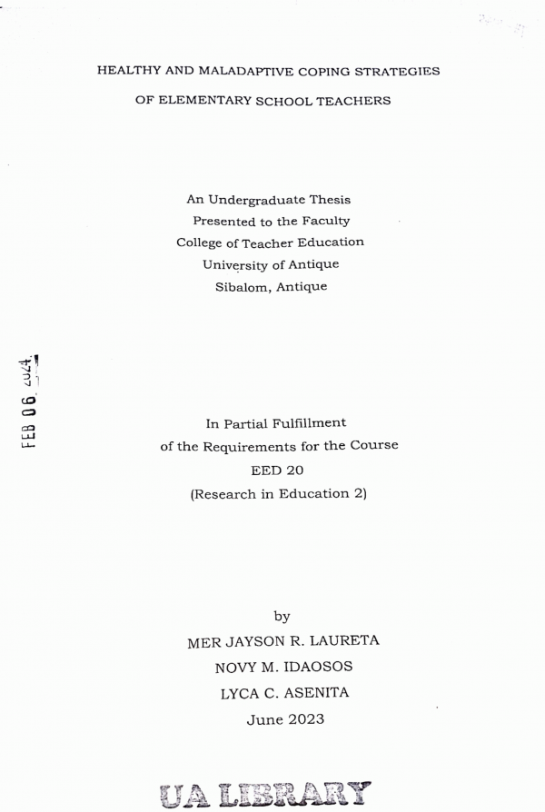 Healthy and maladaptive coping strategies of elementary school teachers /